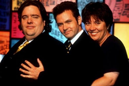 Looking back at Good News Week, it seems odd that it caught on with younger audiences in the way that it did. A lot of it feels like a fairly typical comedy game show, the likes of which we have seen a lot from in the UK, but back in 1996 we didn’t really get those sorts of shows on TV here. There was a novelty to the format. Having the popular former DAAS member Paul McDermott and Mikey Robbins from JJJ’s breakfast radio show on certainly created that bridge to younger viewers. But watching the show now, it feels very same-y.