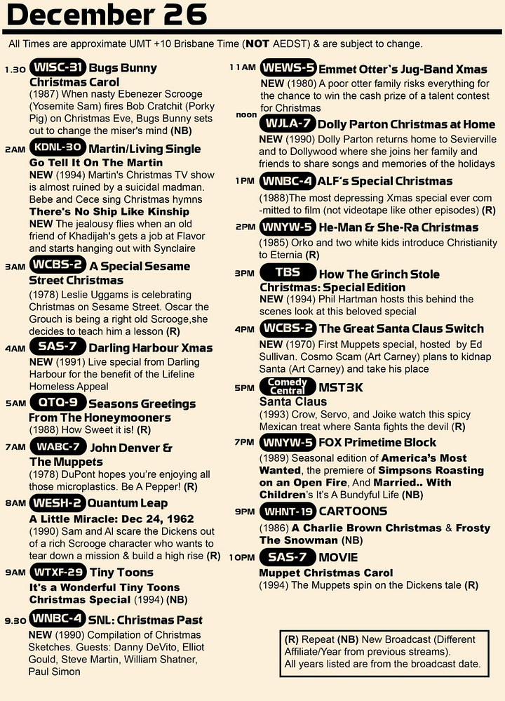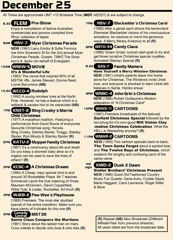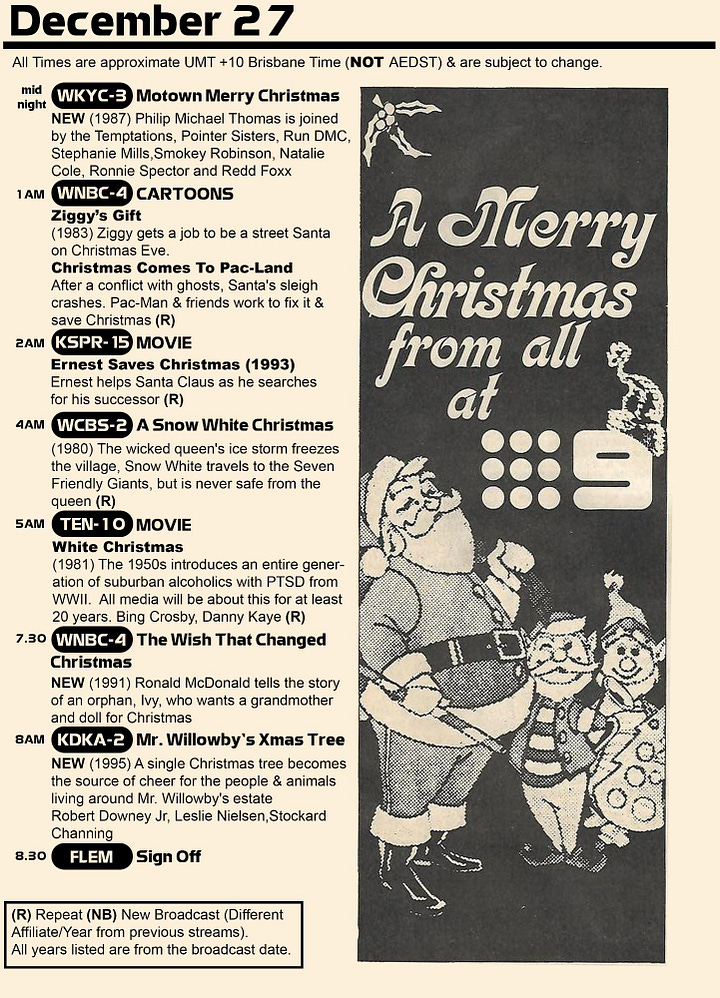 These days you don’t get much of that sort of programming. But, may I draw your attention to the outstanding work of Rhys AKA Flemishdog, a Twitch streamer who every year programs 48 hours of Christmas fare. He does all sorts of deep dives with content he has recorded on VHS over the years (often complete with ads from years gone by) and there’s a constant stream of interesting choices - not all are gems, but also, in a sense, they’re all fantastic.