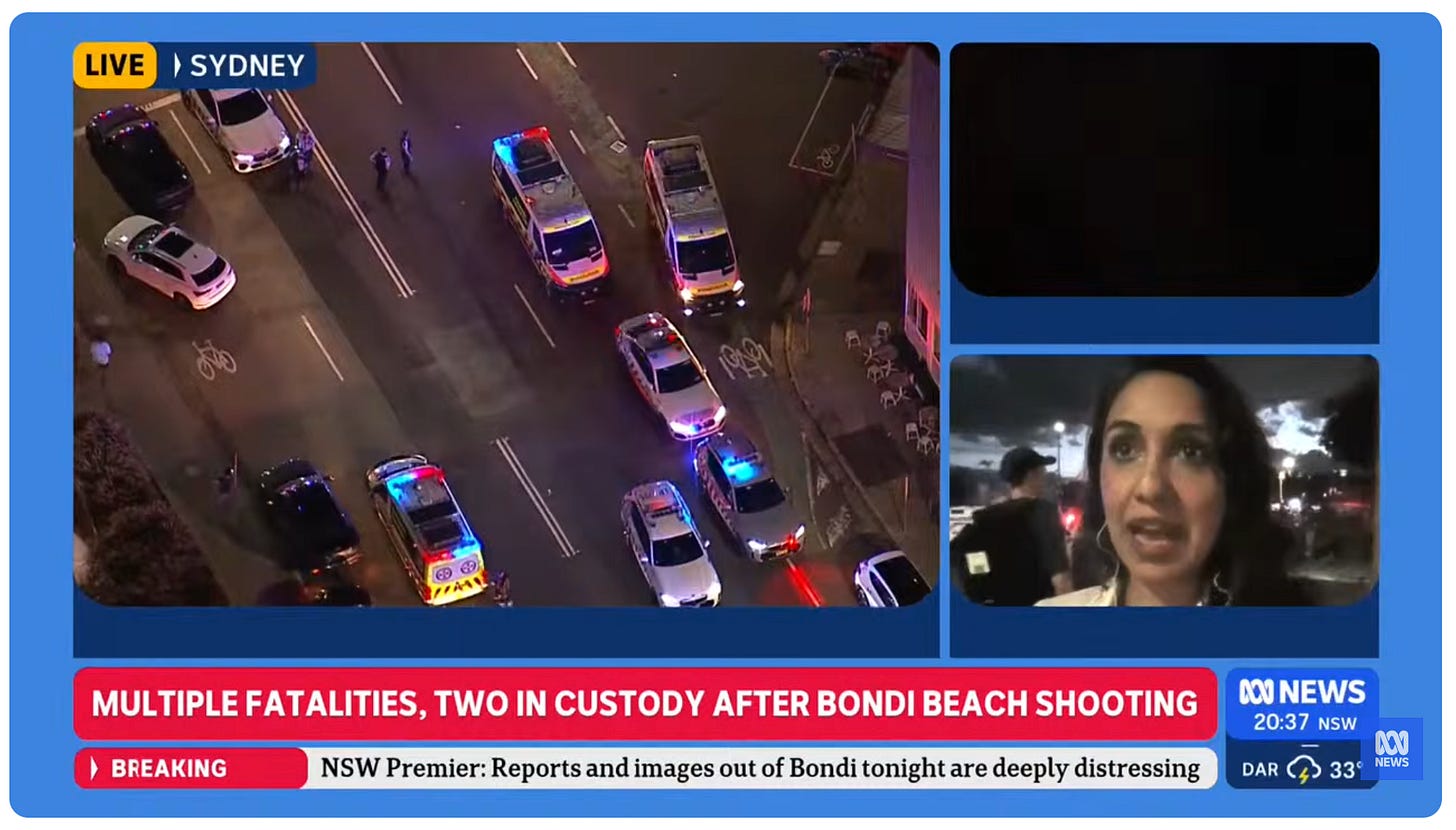 Like a good many Australians, I spent quite a few hours last night glued to the TV watching news coverage of the horrific Bondi Beach terror event yesterday.